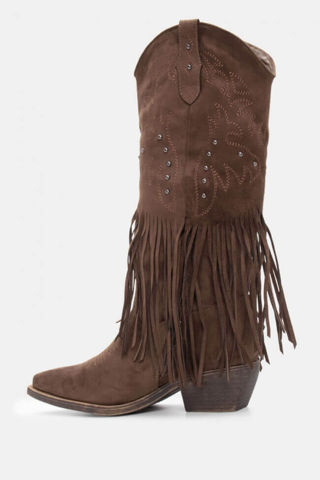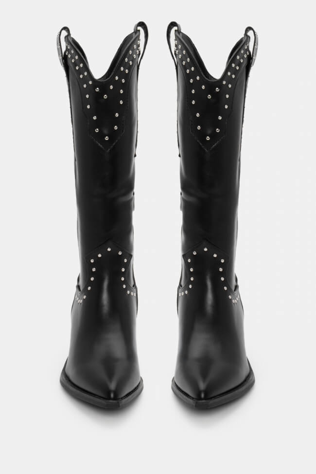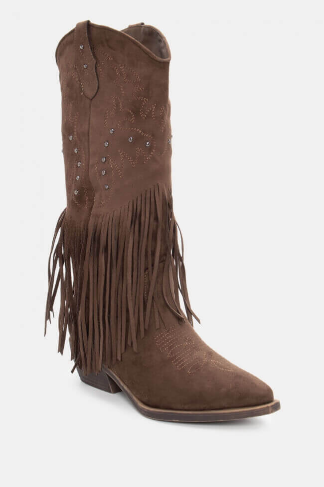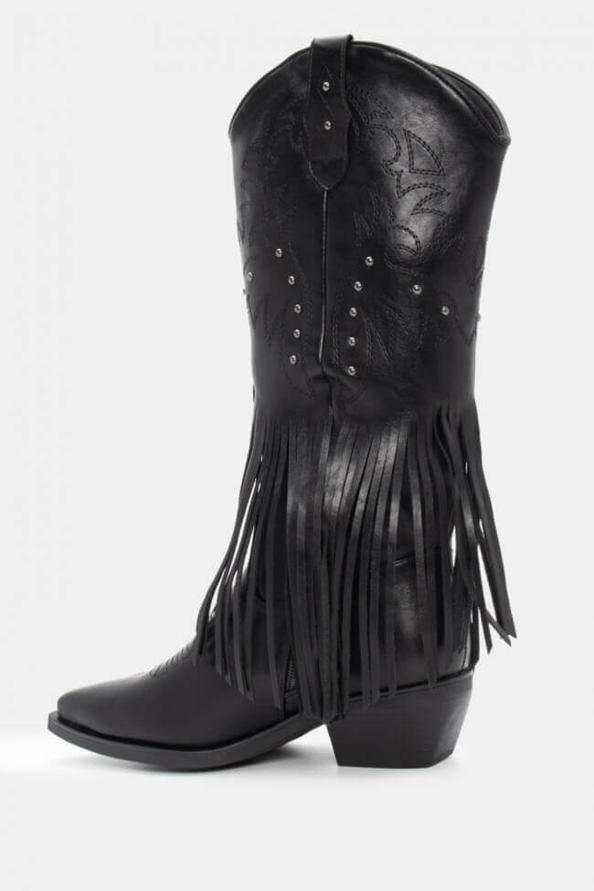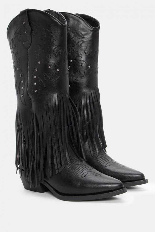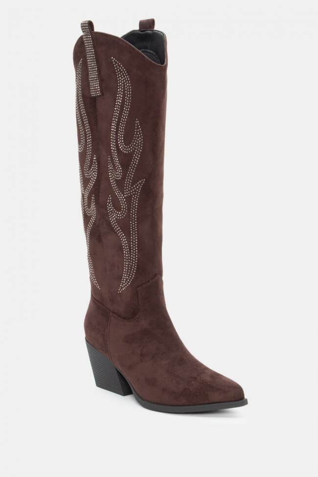 Каубойски ботуши с ефект на сгъваща се фаска и страсове