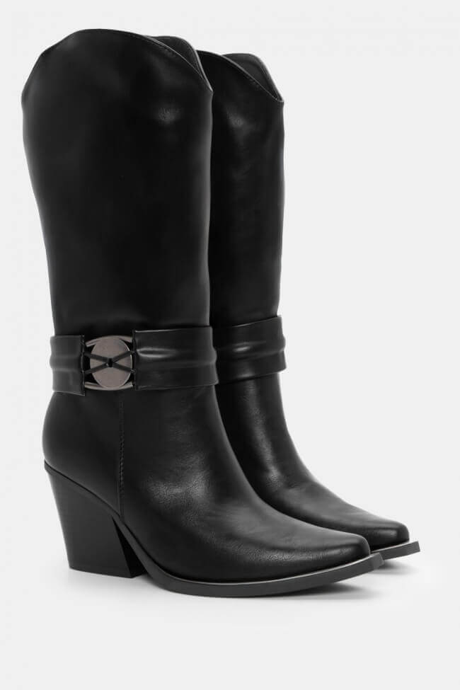 Kaубойски ботуши с ефект на прегъване с двойни каишки