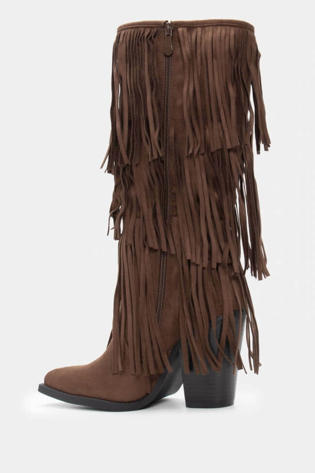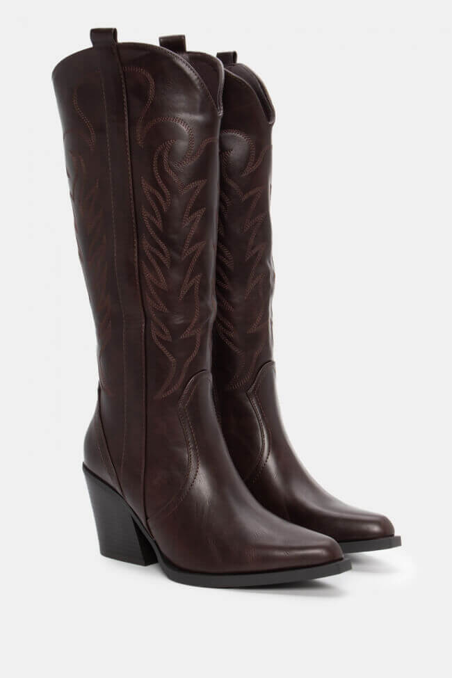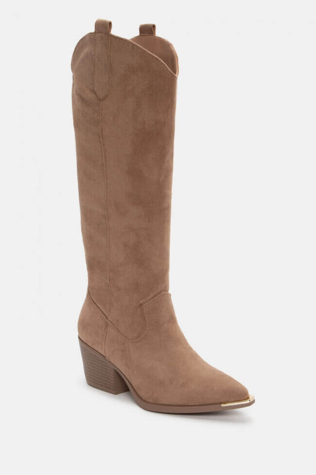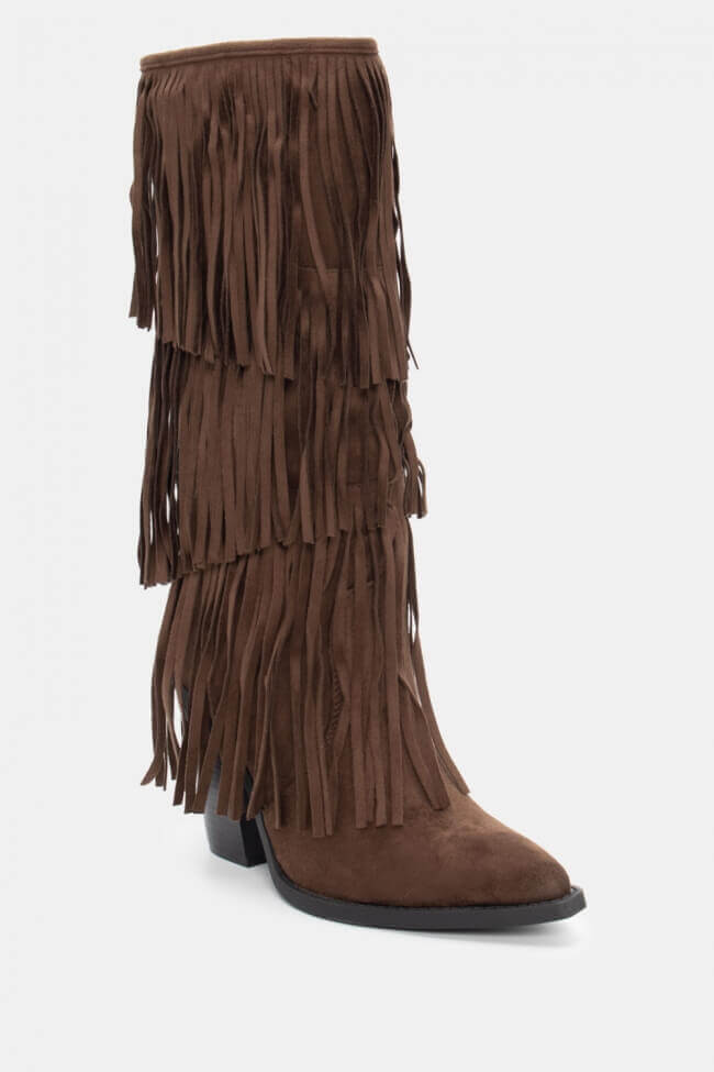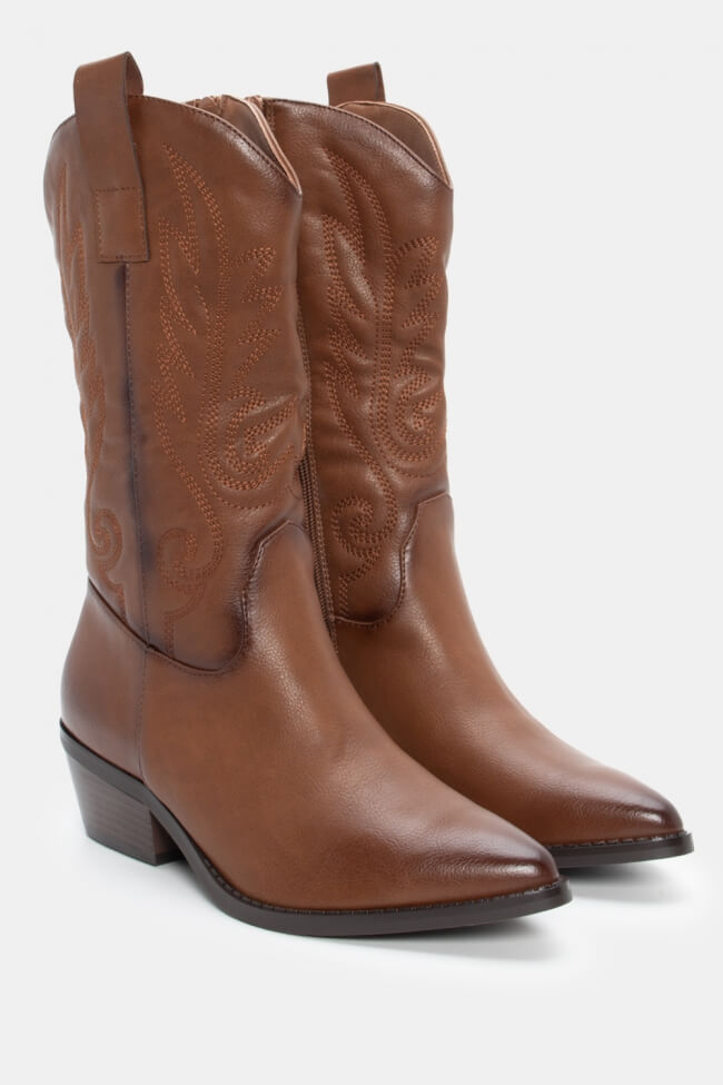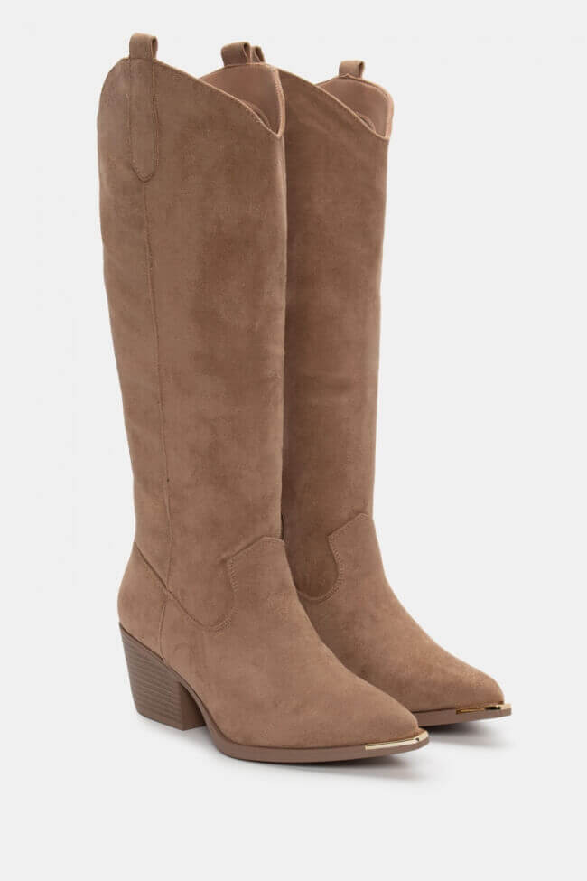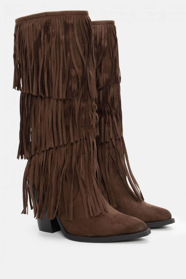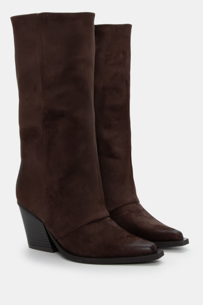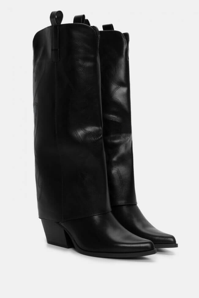 Каубойски ботуши с ефект на сгъваща се яка и козина