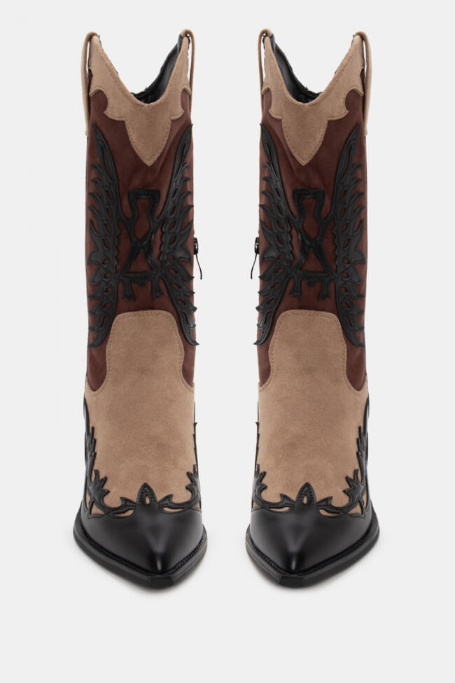 Каубойски ботуши със заострен връх с декоративни пламъци от страс
