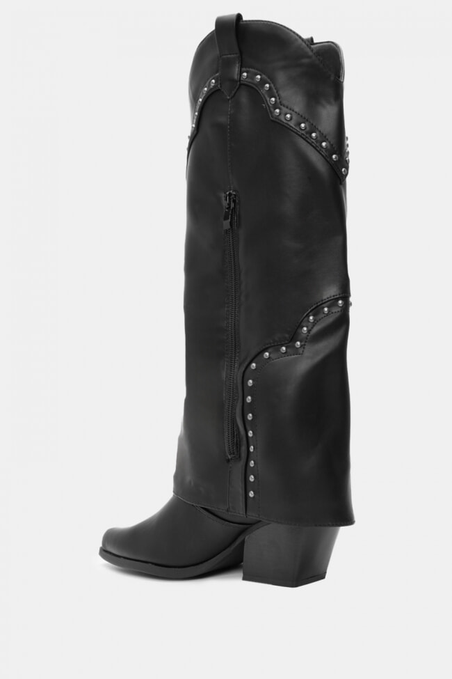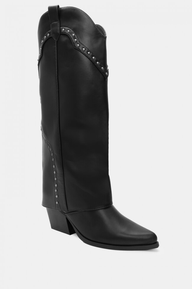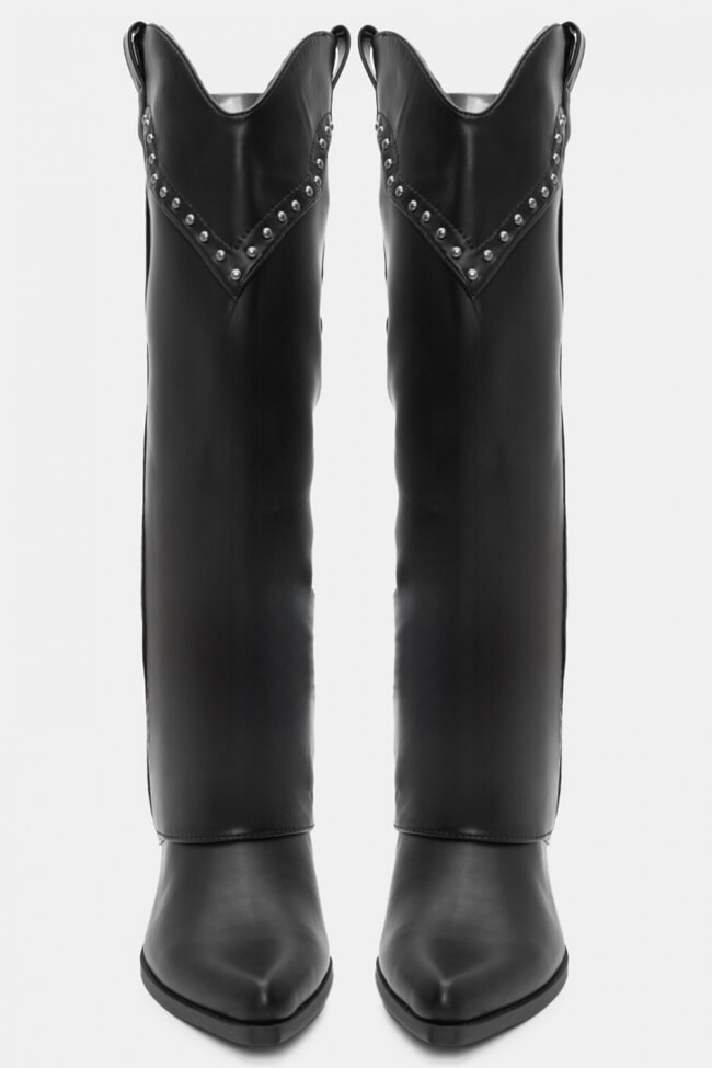 Stivali Cowboy con Effetto Risvolto & Borchie