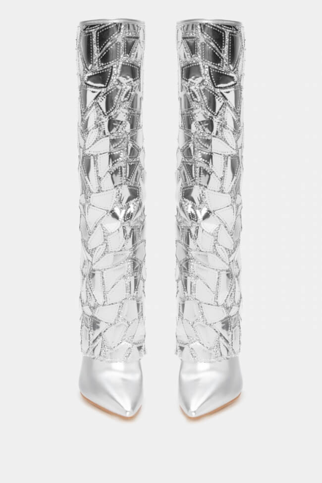 Stivali con Risvolto Effetto Pieghevole & Paillettes