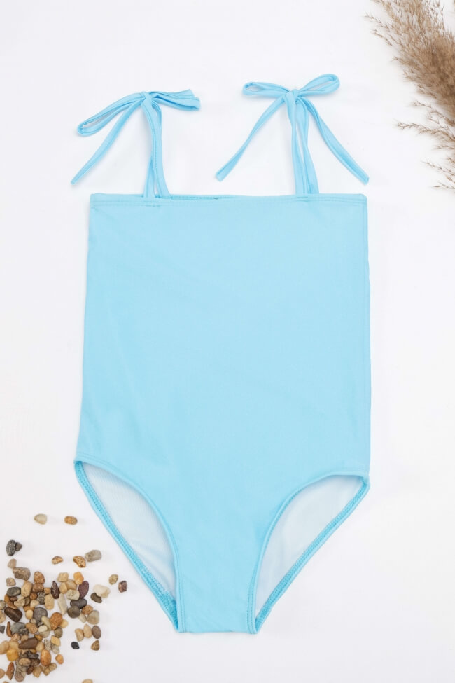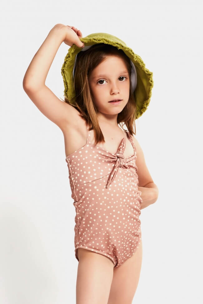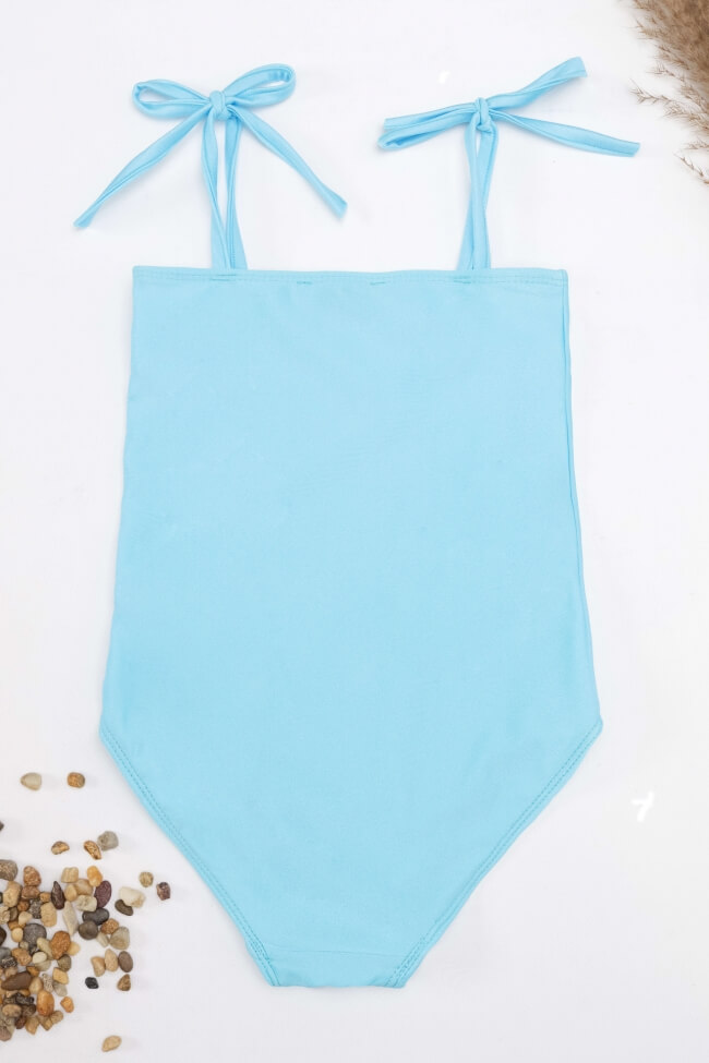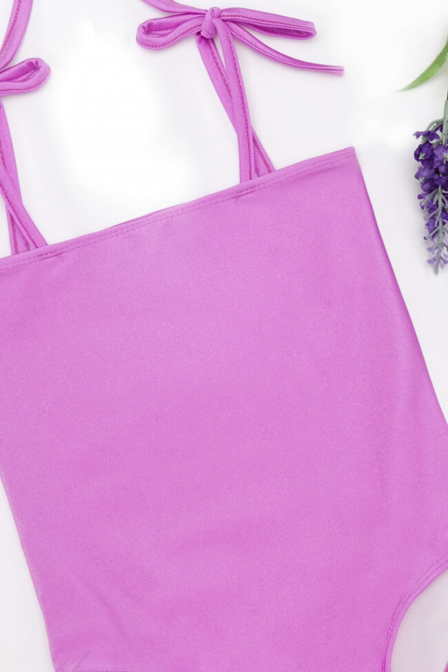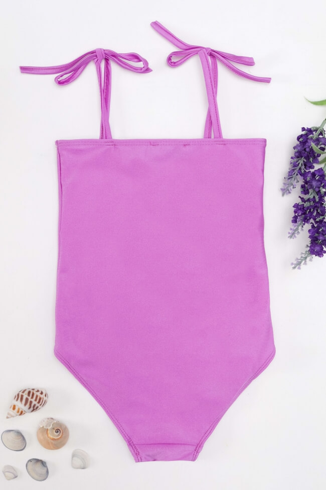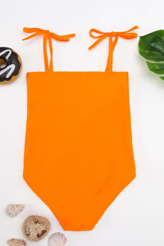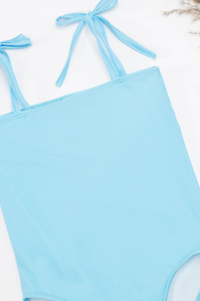 Costum de baie întreg cu bust din material gofrat și cu legare în față