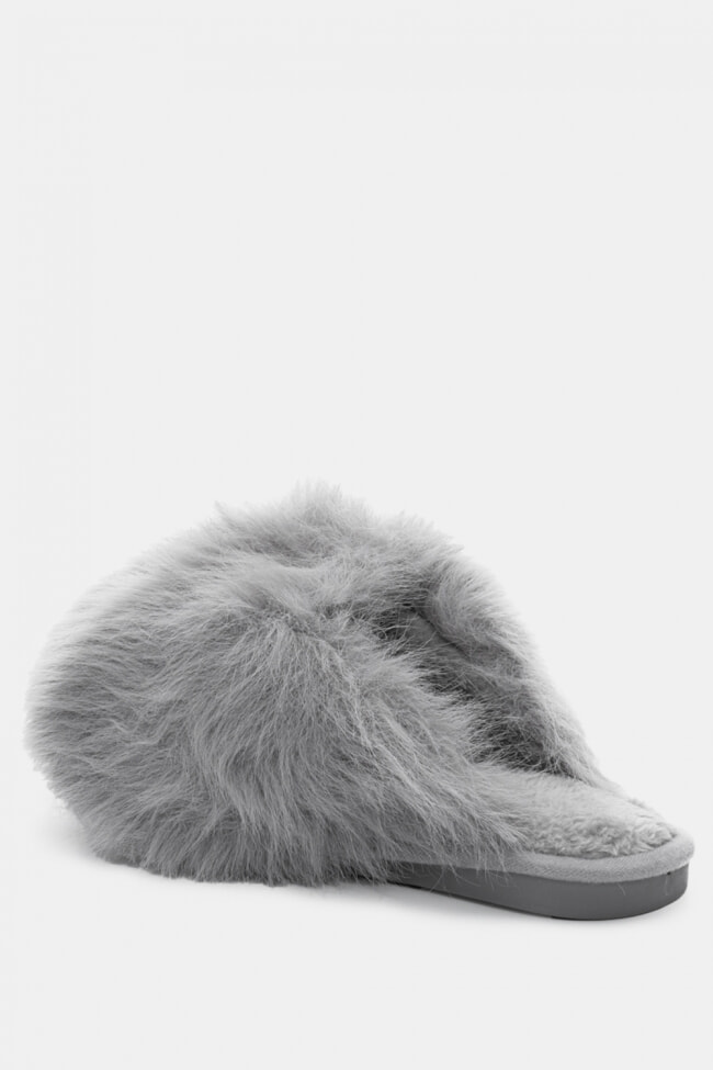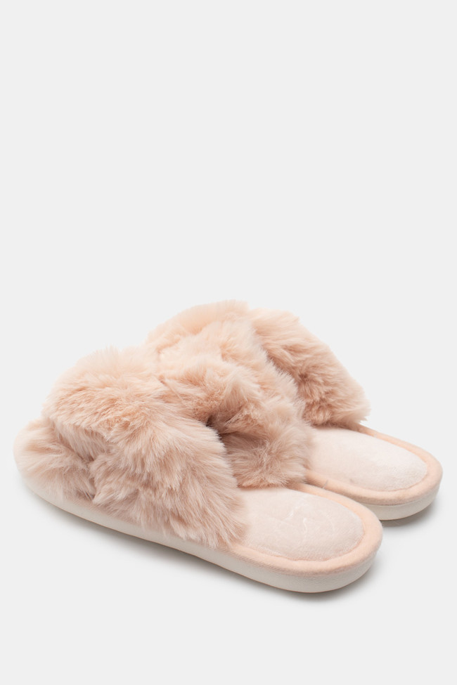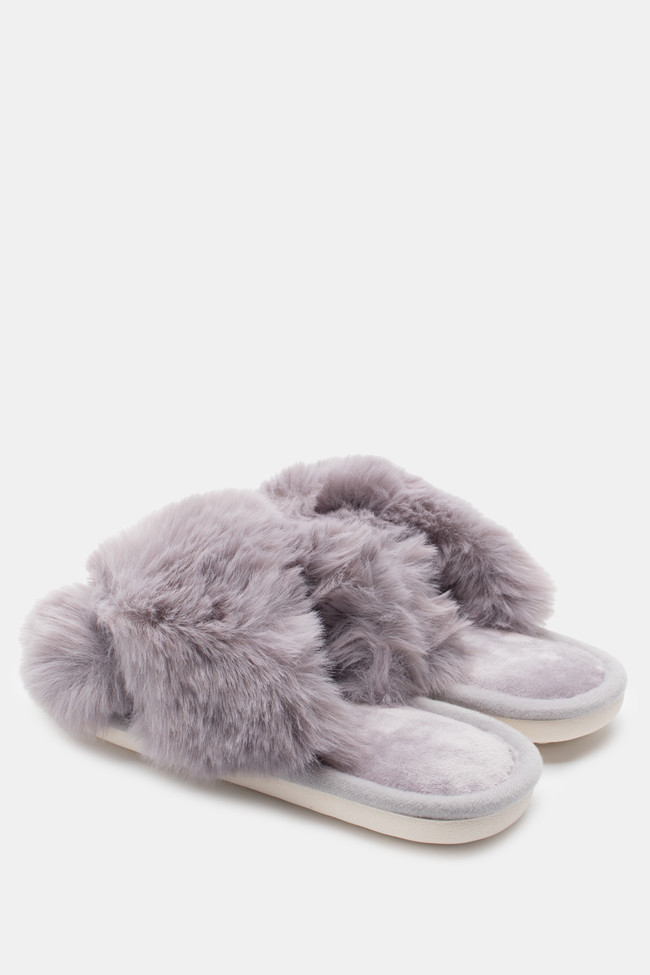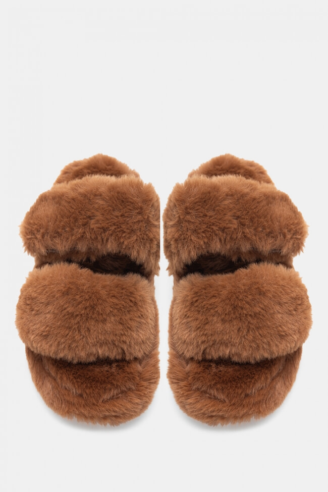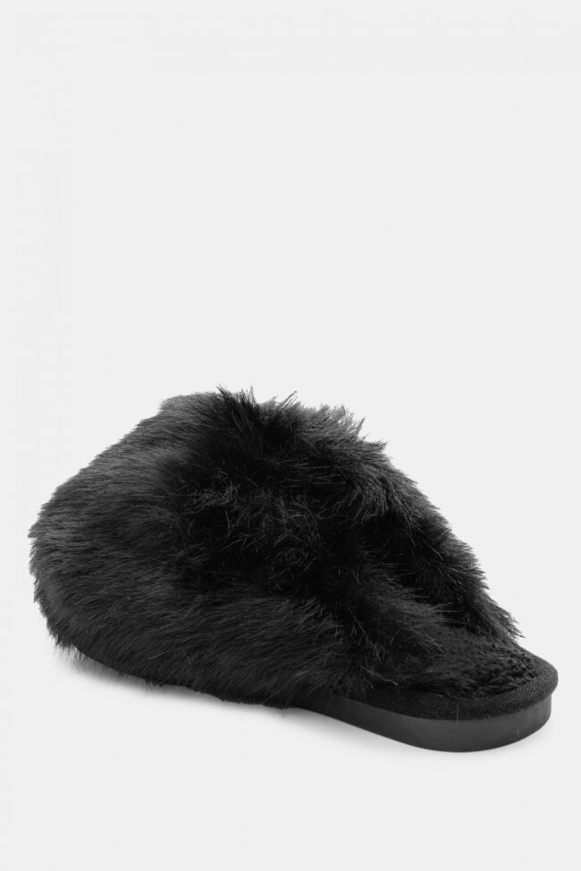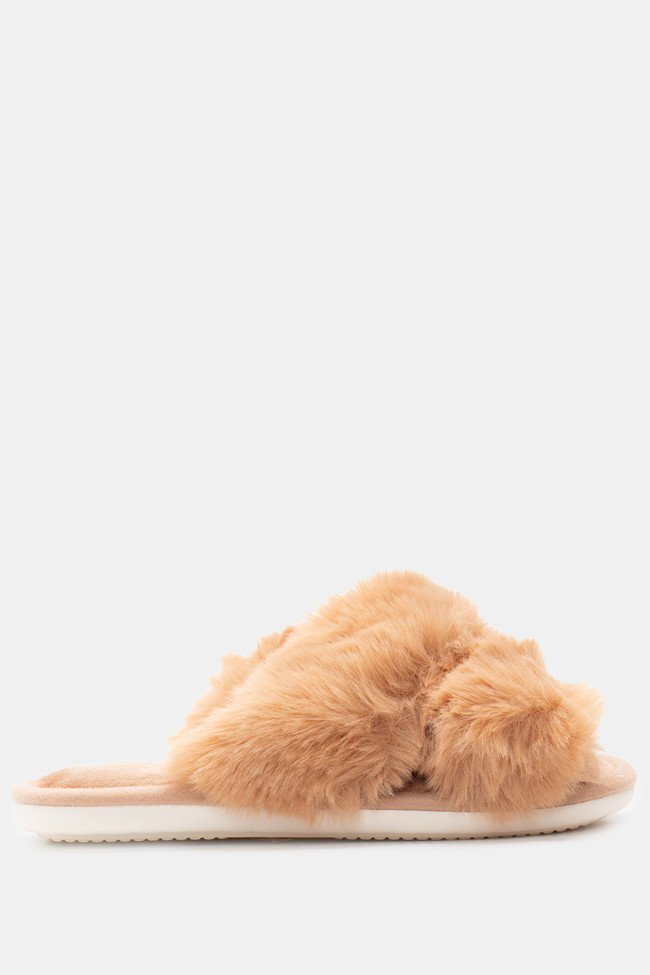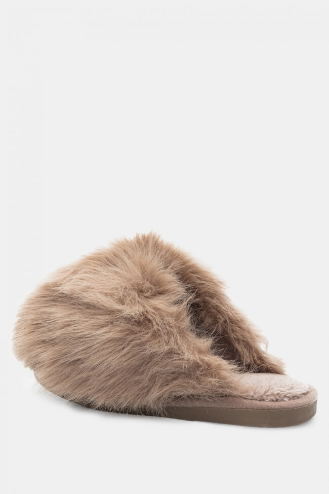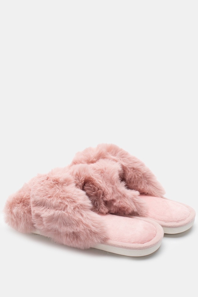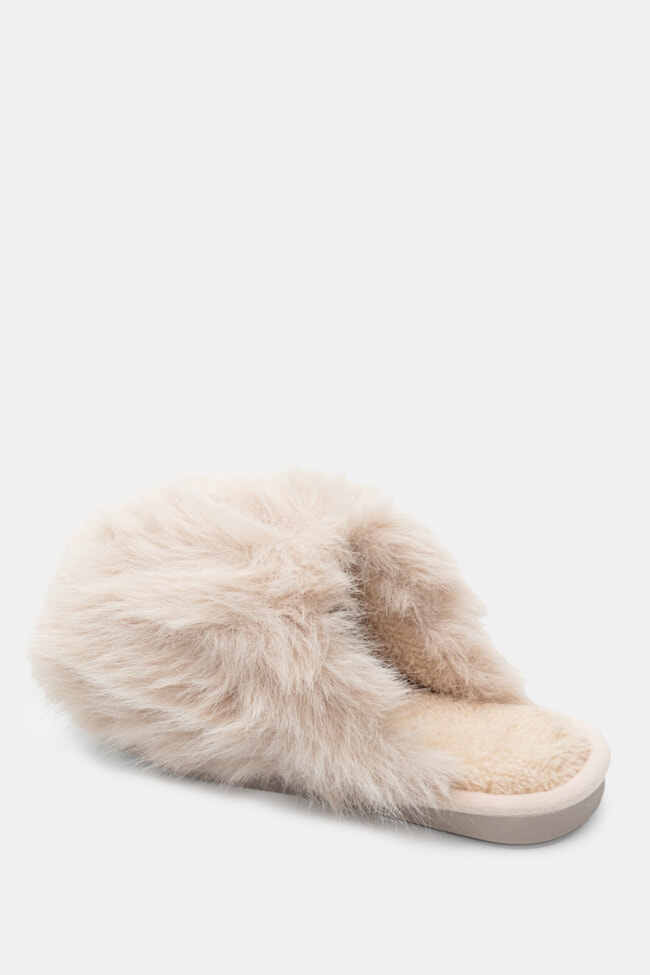 Papuci de blană cu barete încrucișate