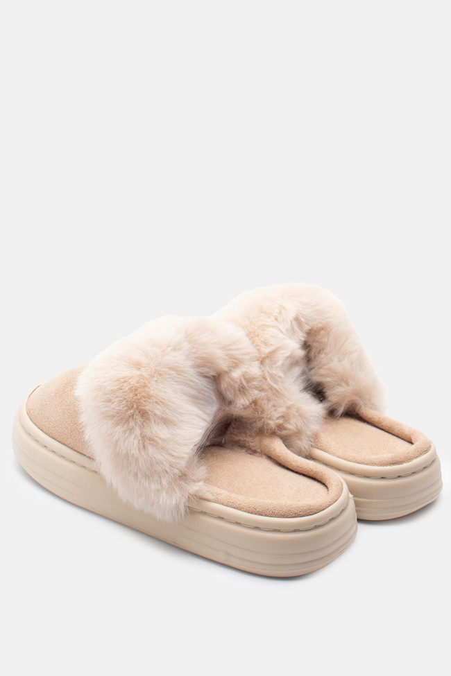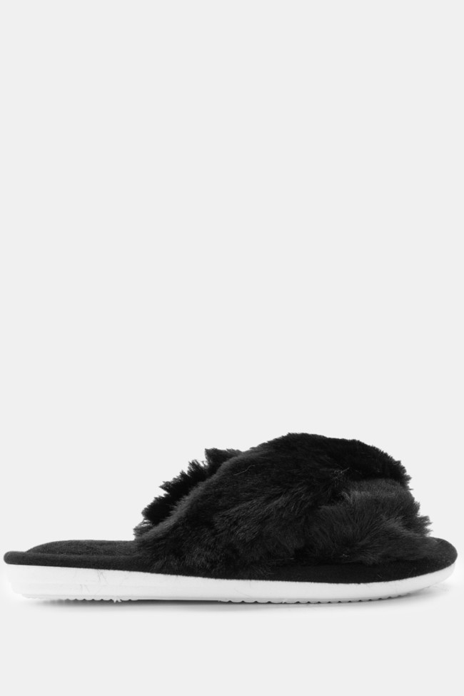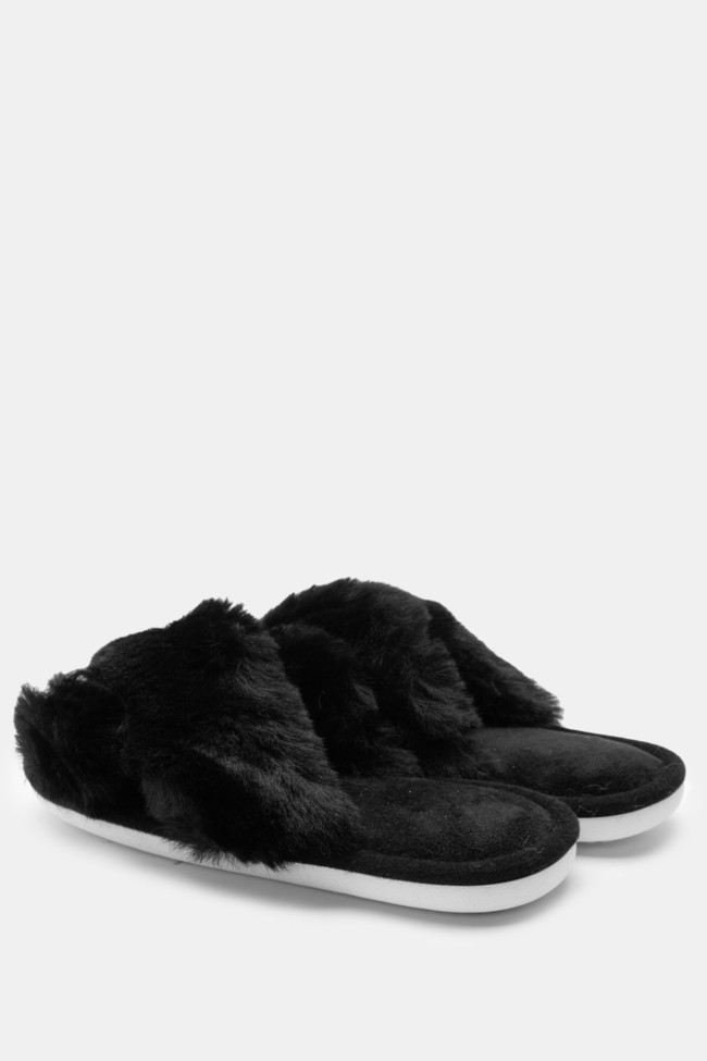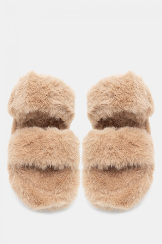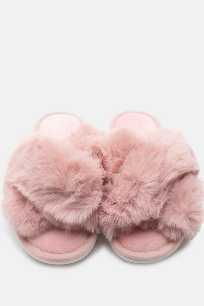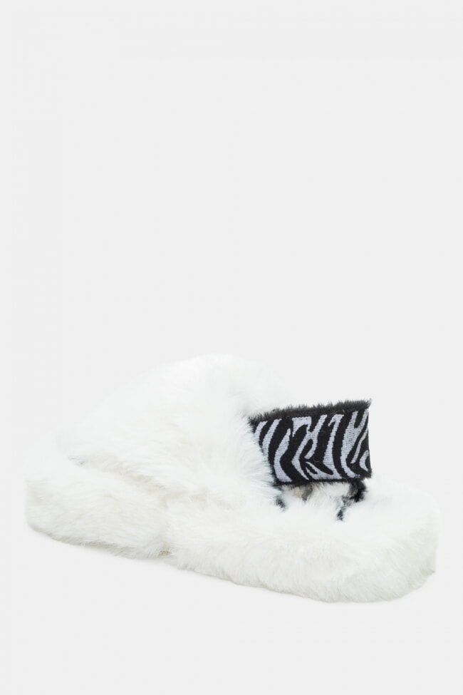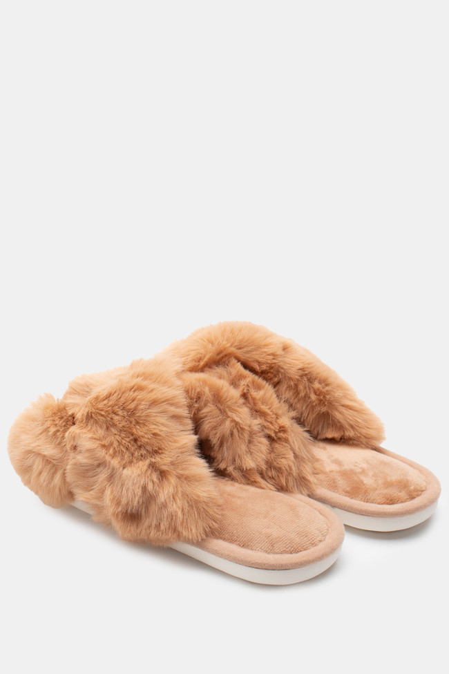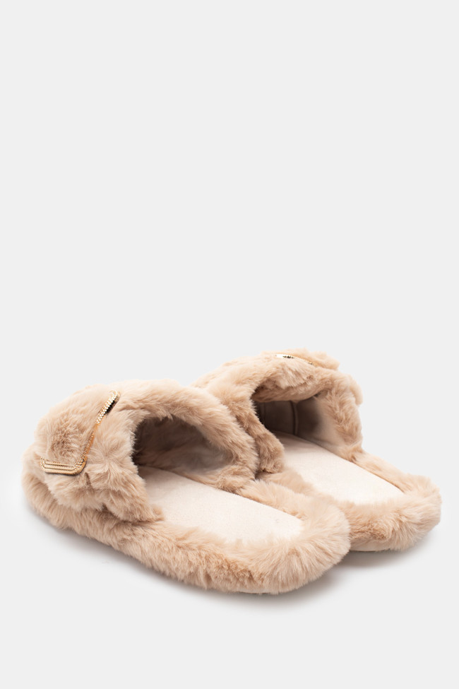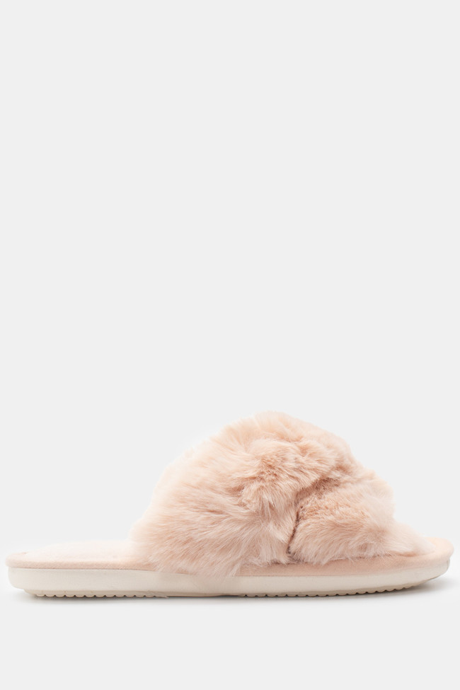 Papuci de blană cu barete încrucișate