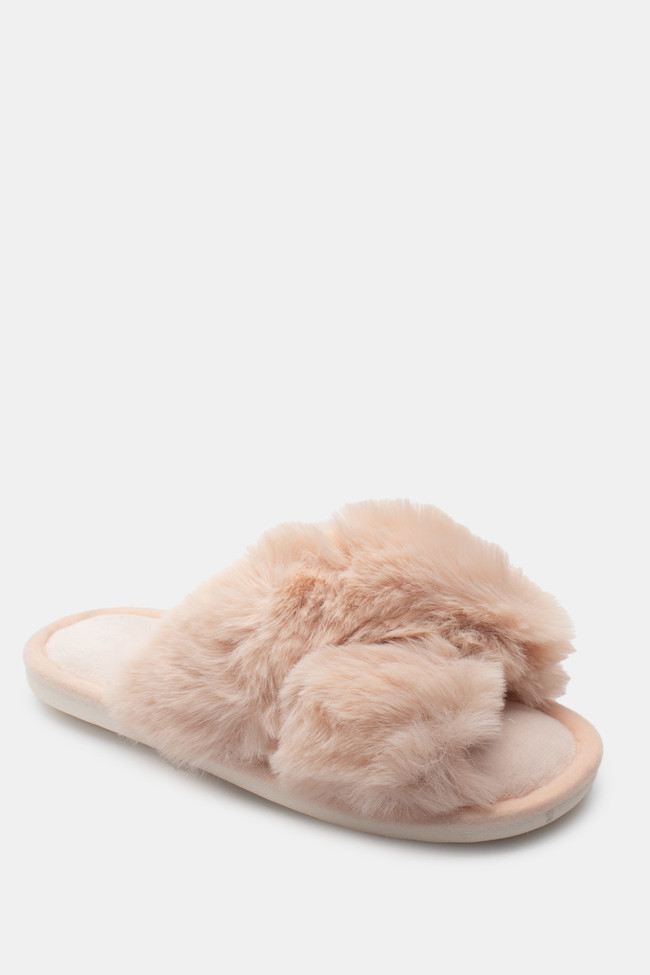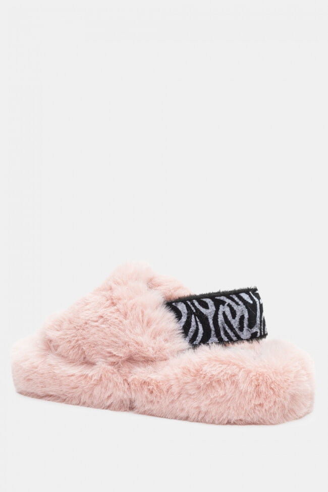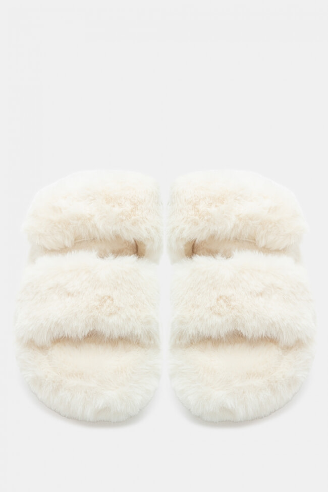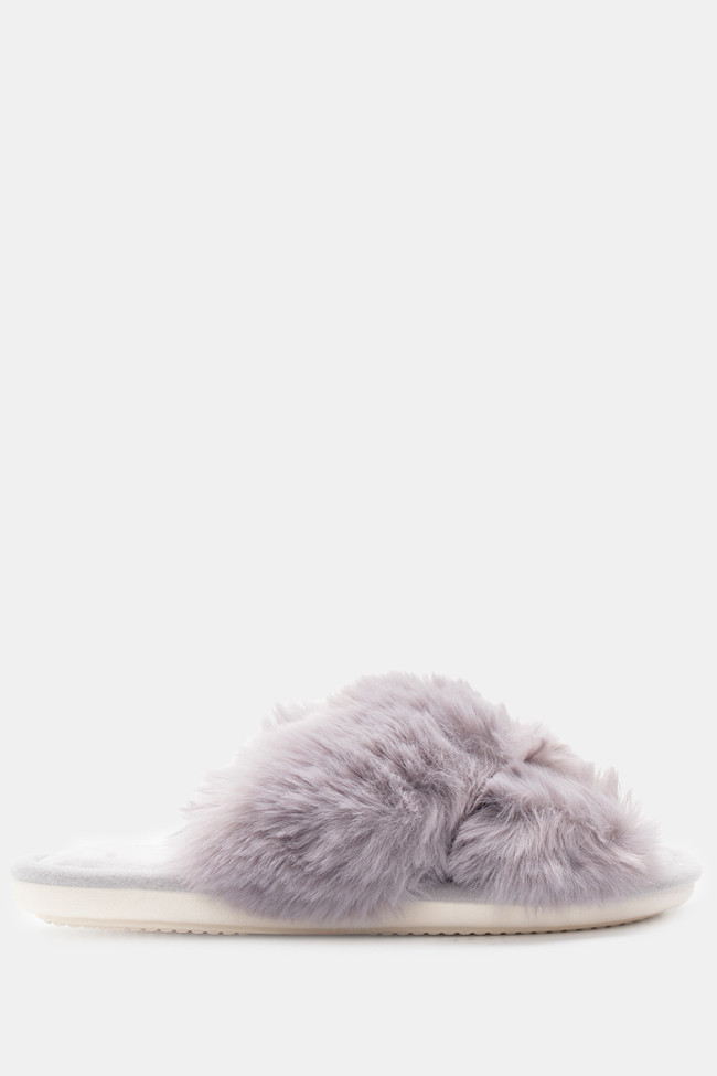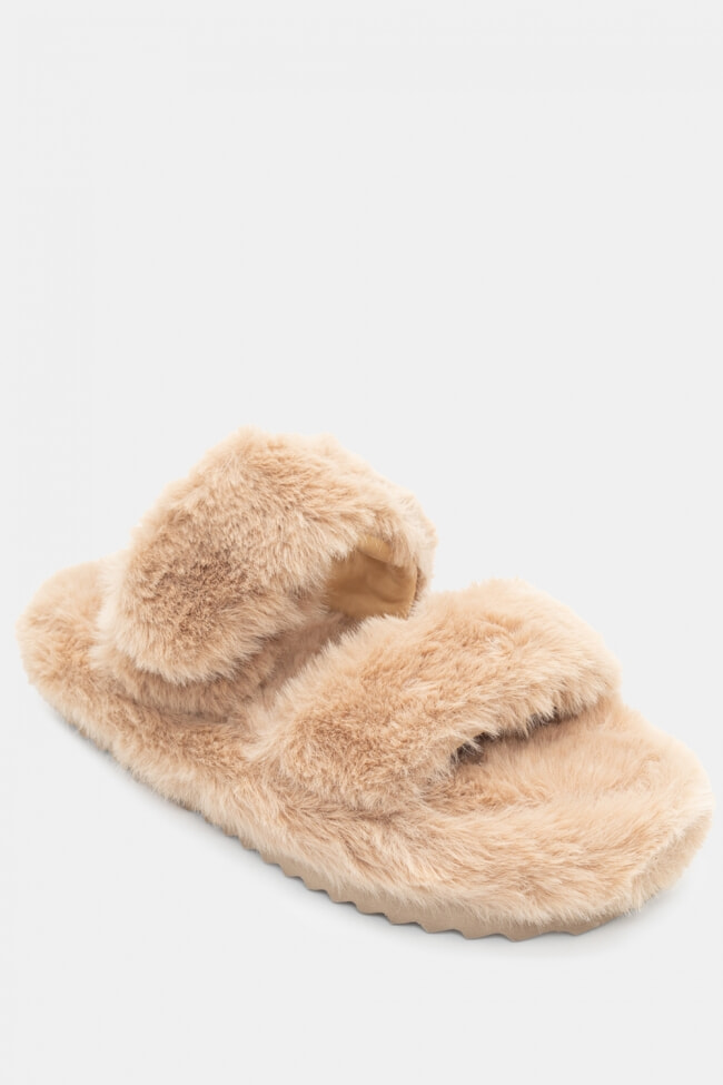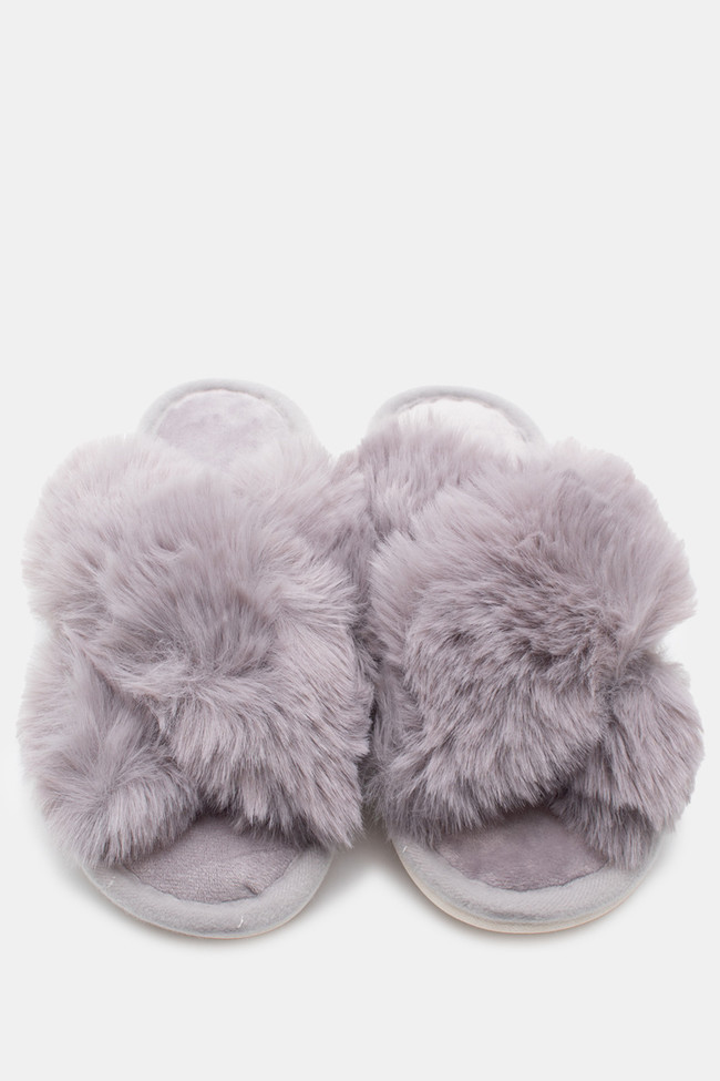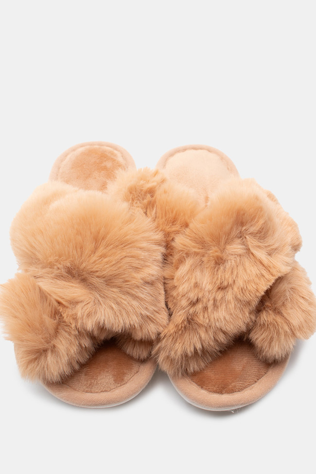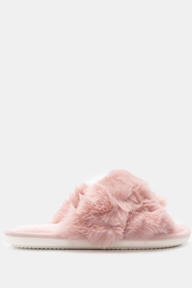 Papuci de blană cu barete încrucișate