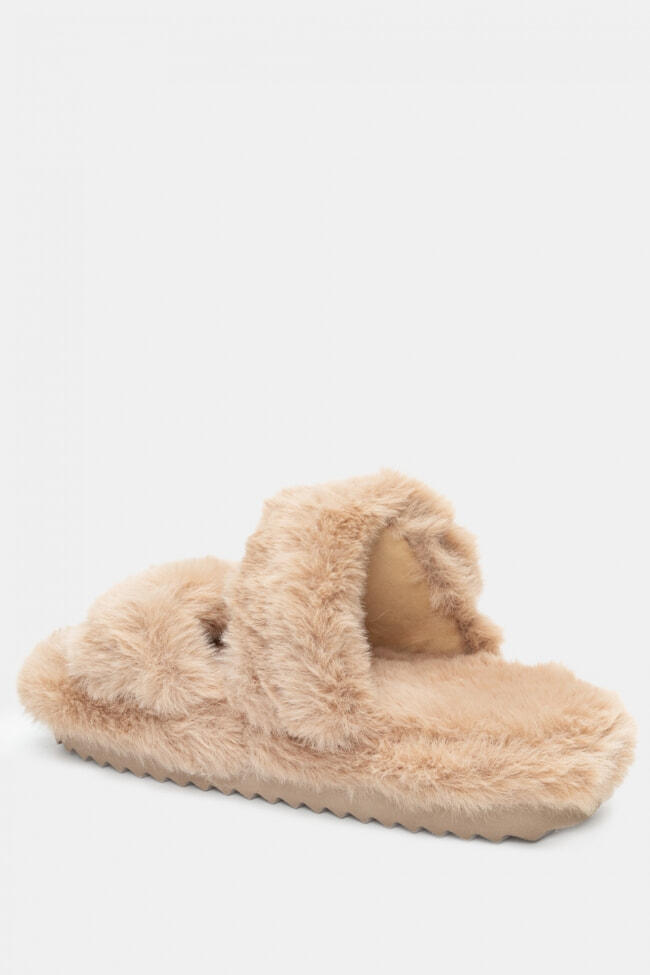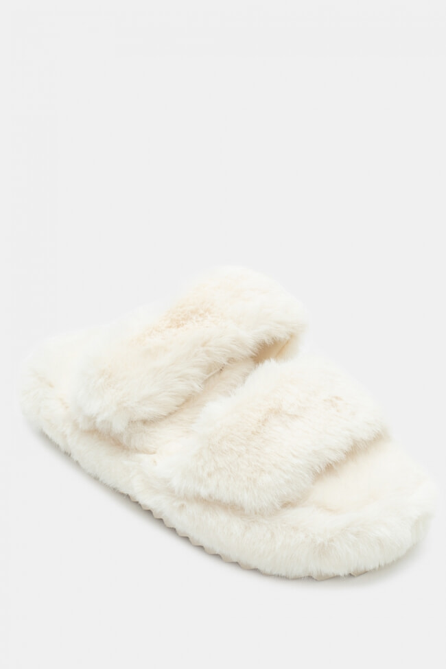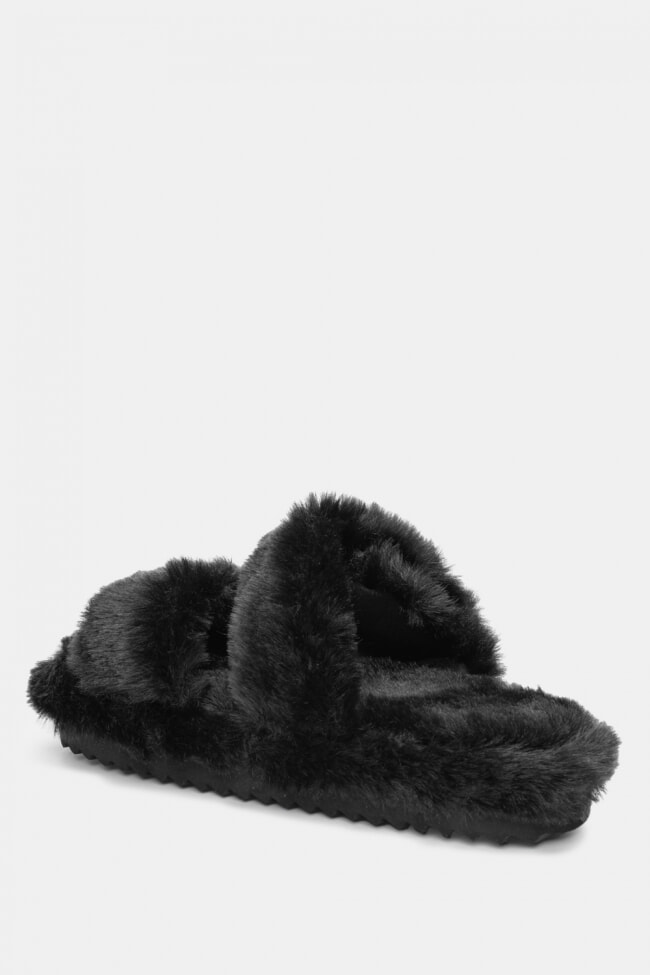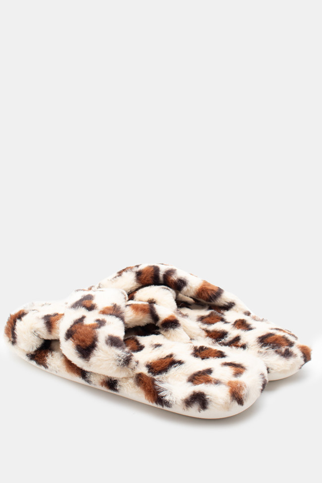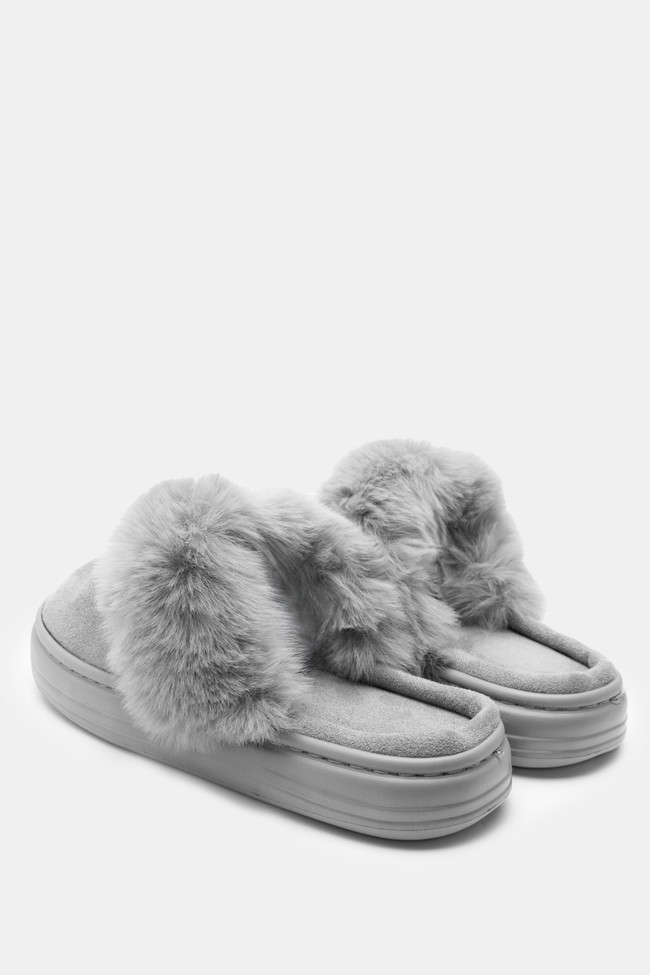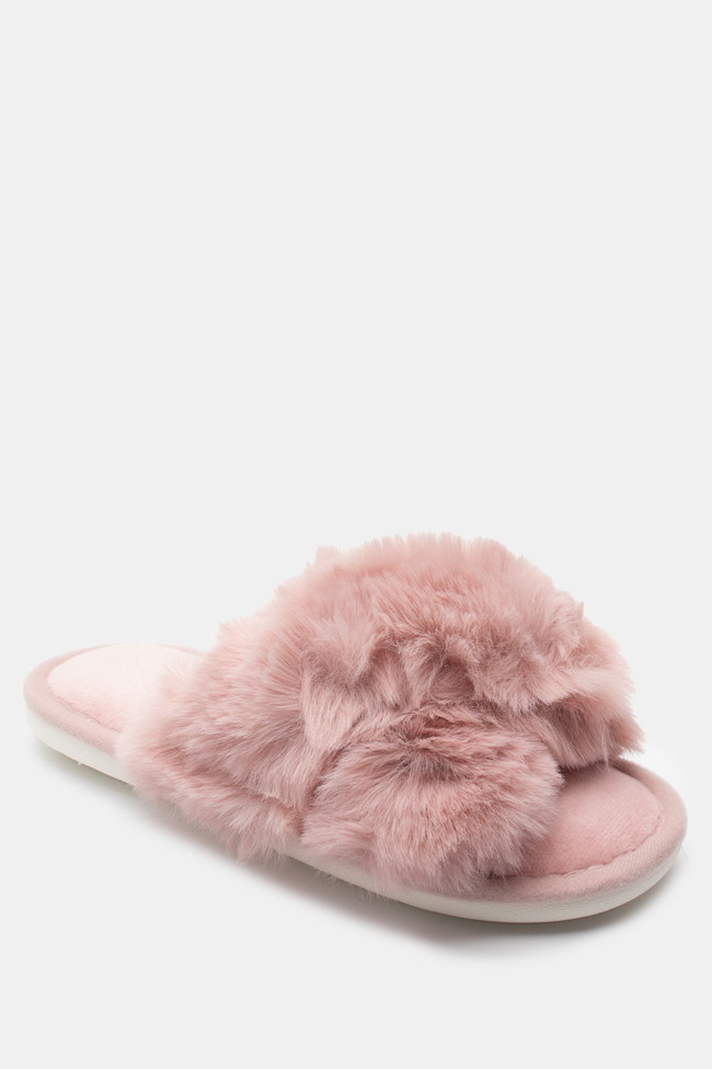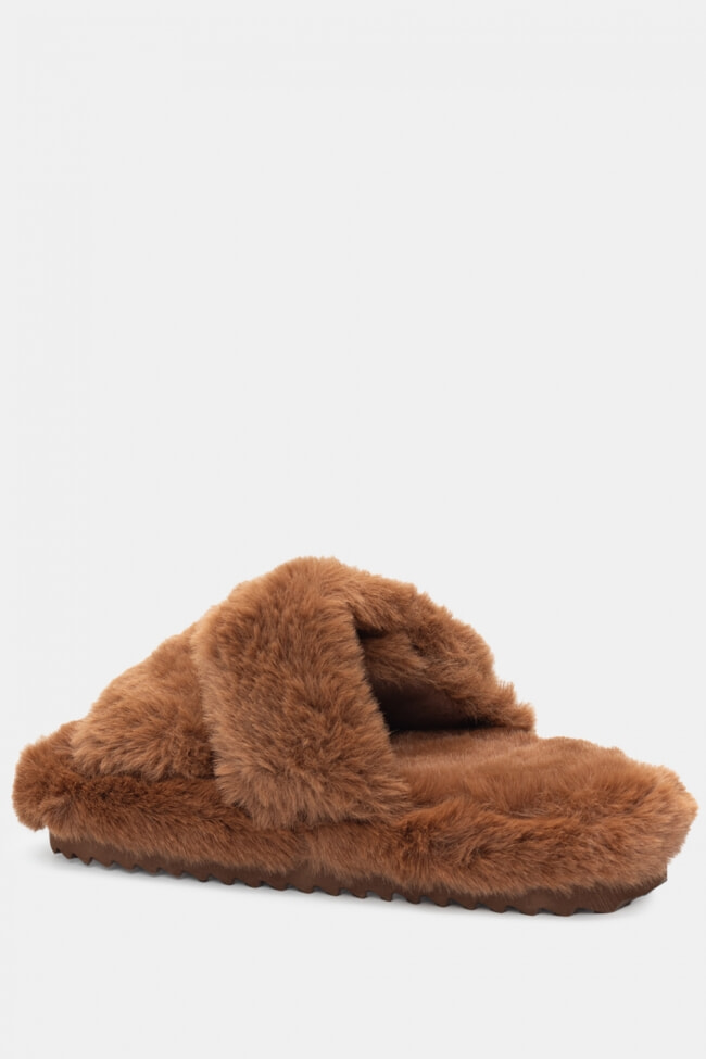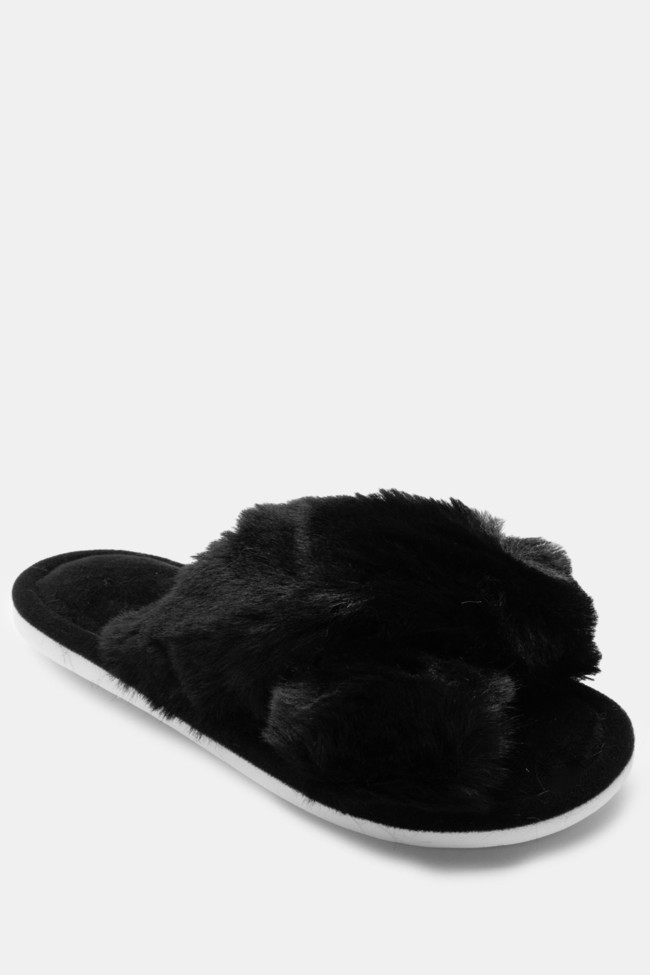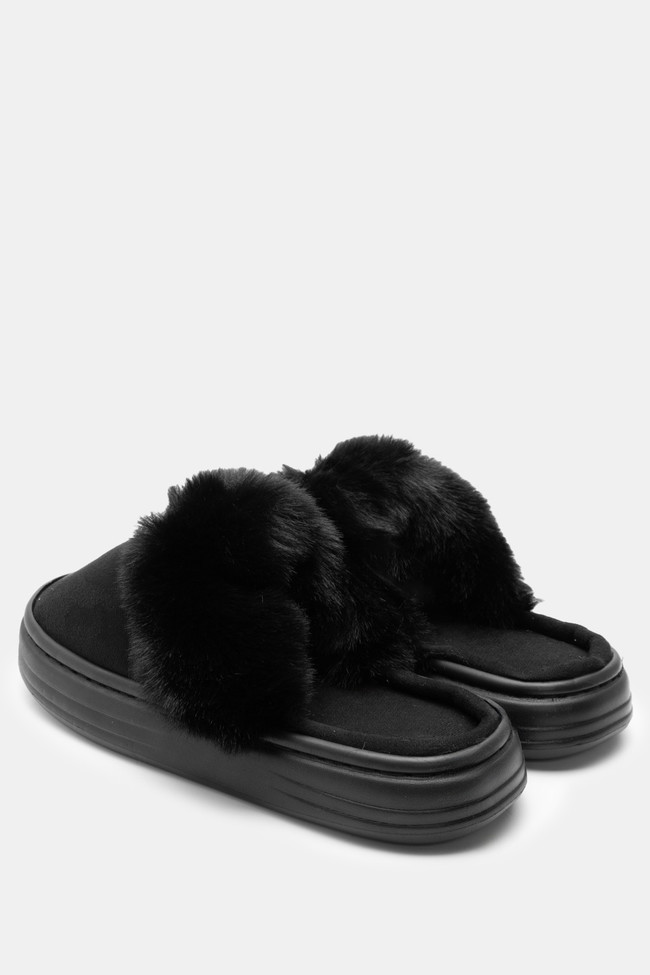 Papuci de blană cu barete încrucișate
