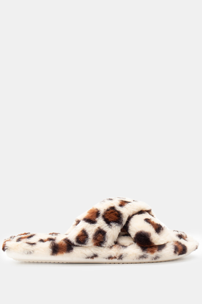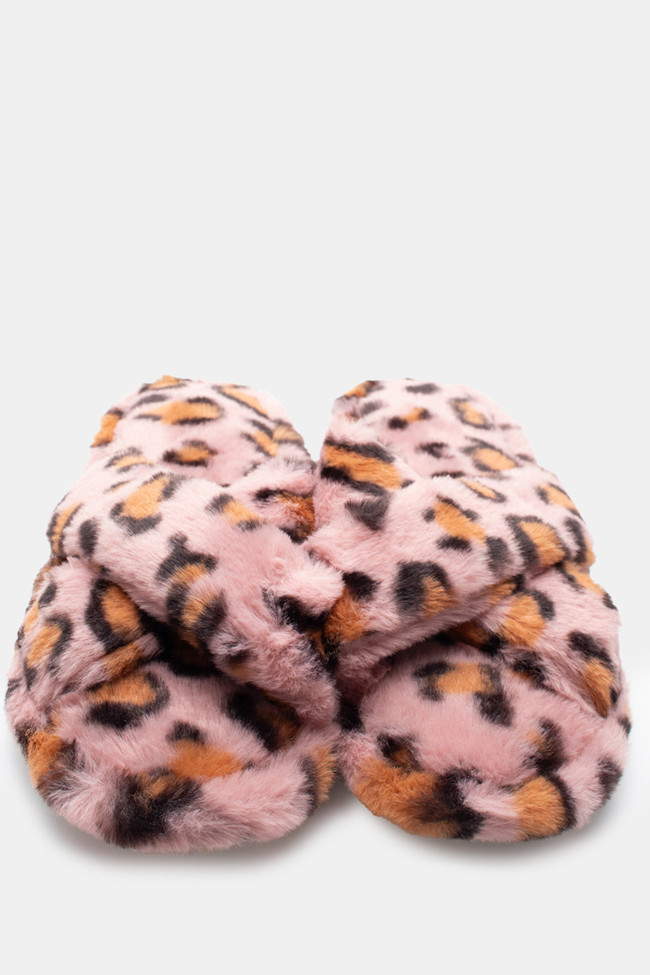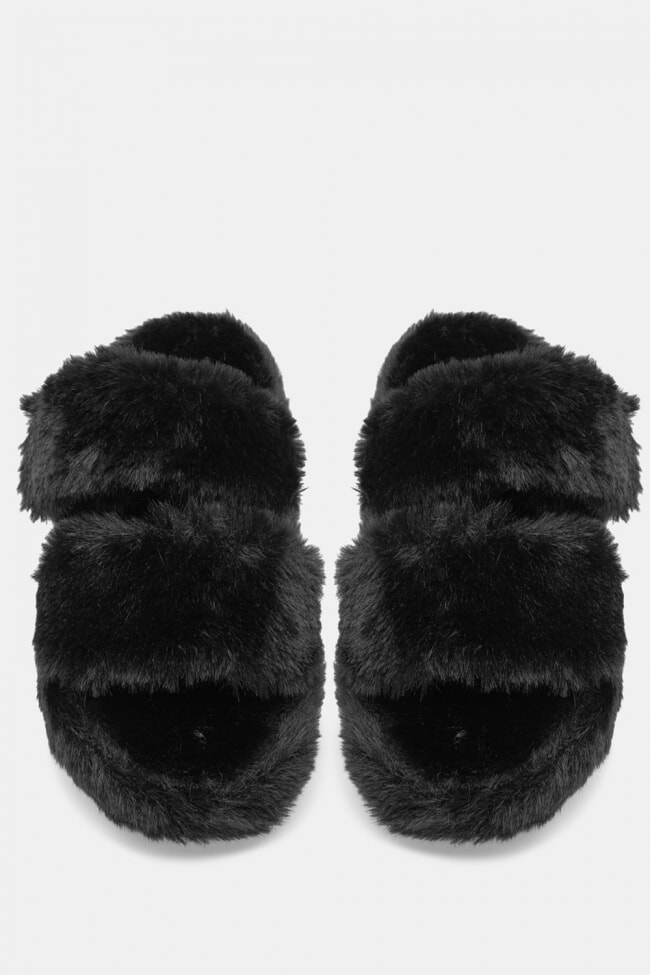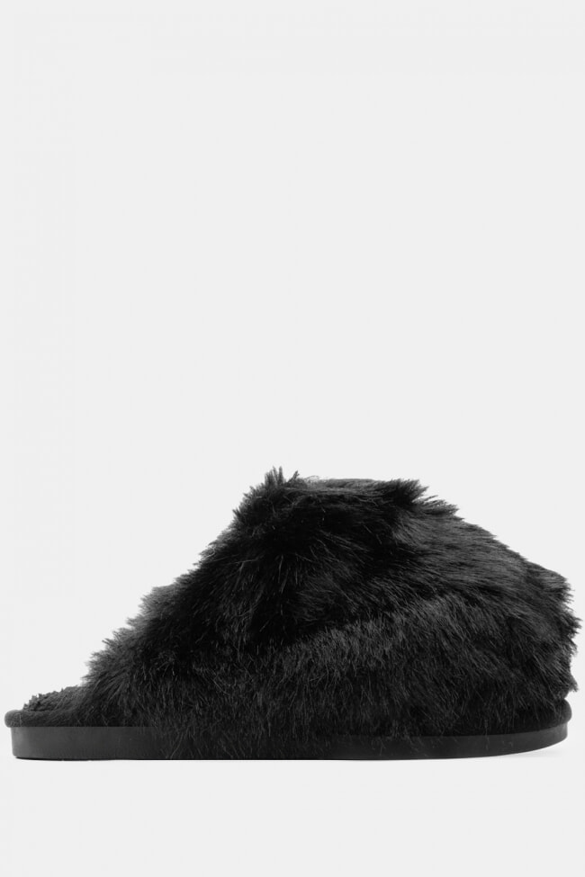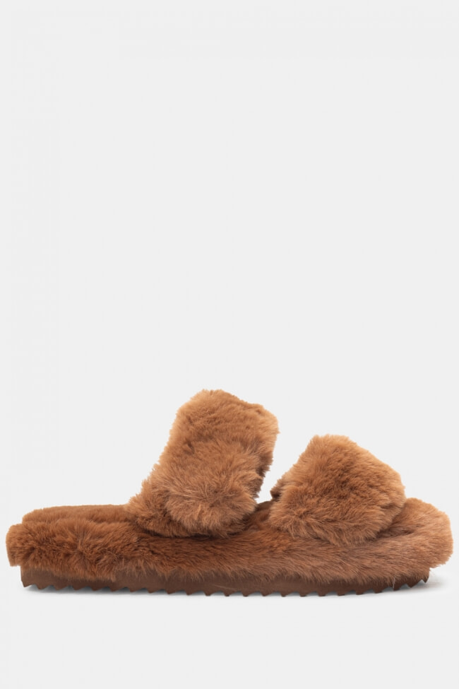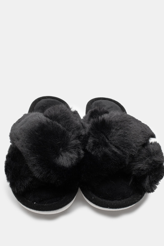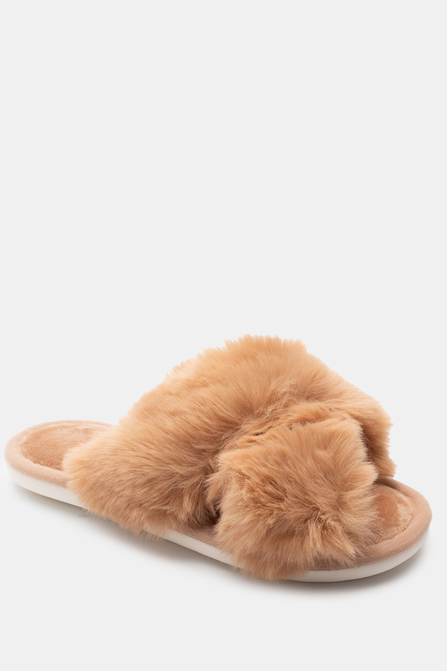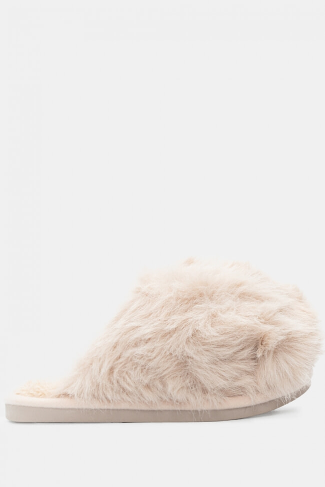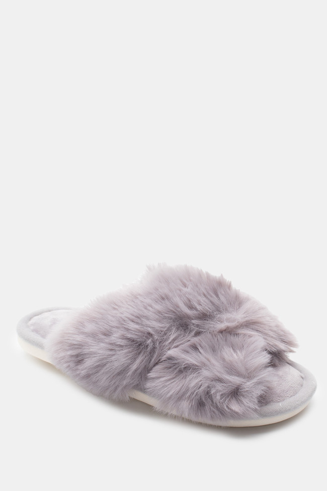 Papuci de blană cu barete încrucișate