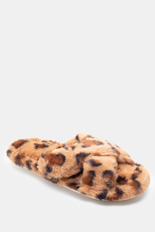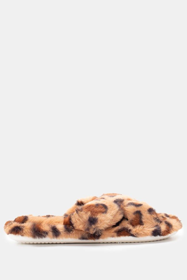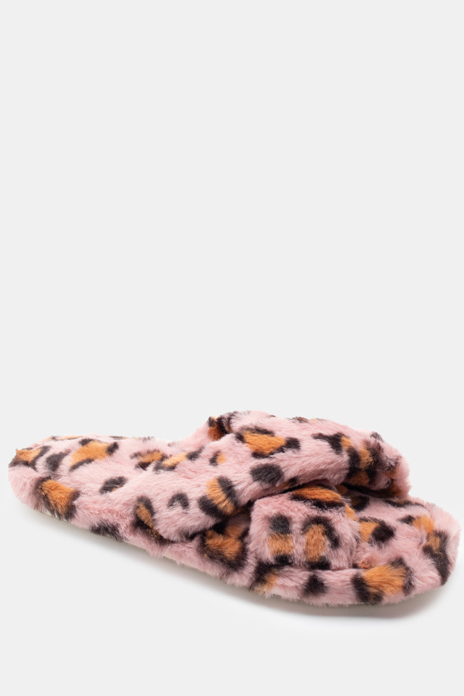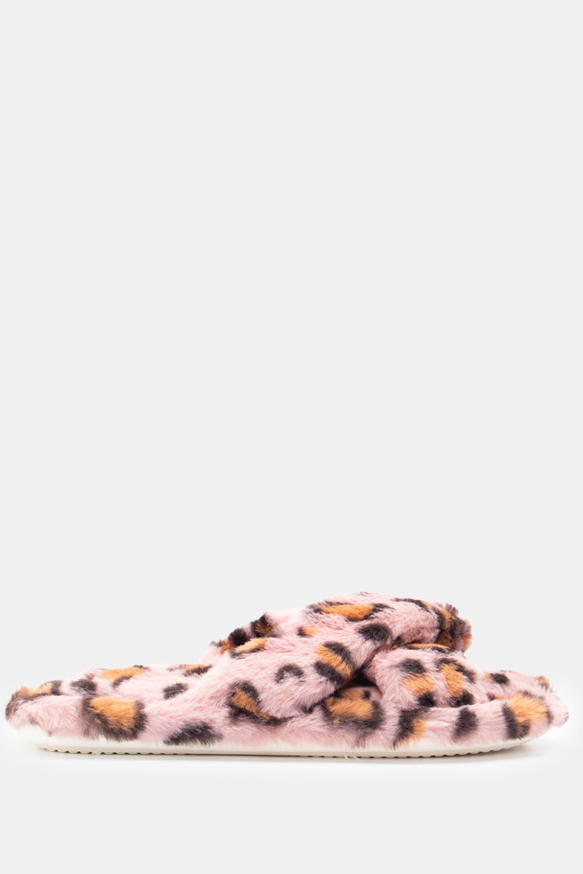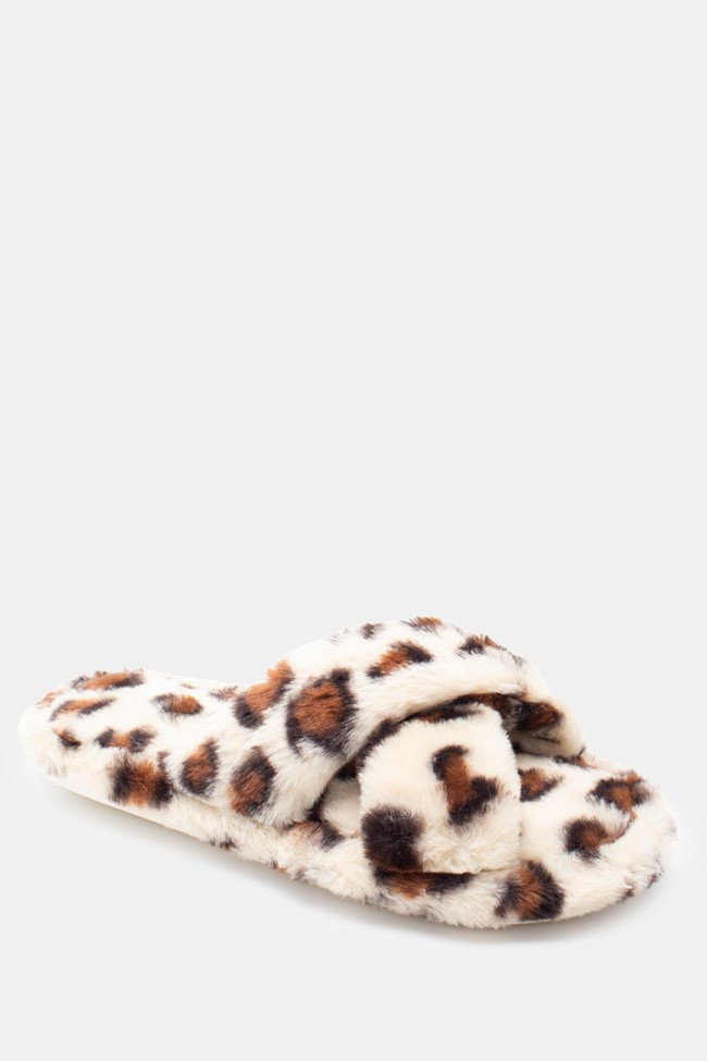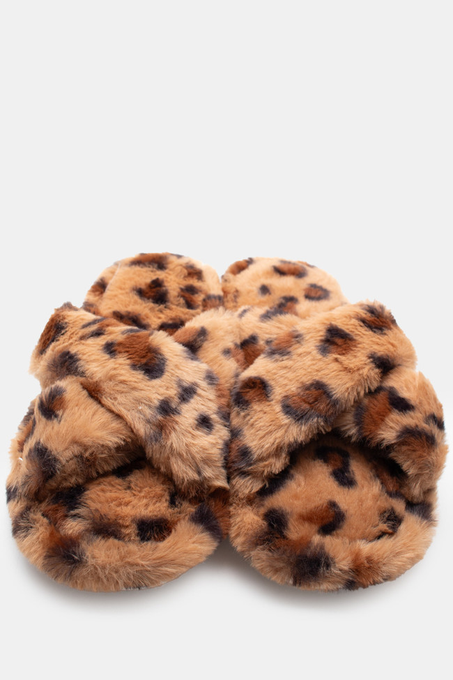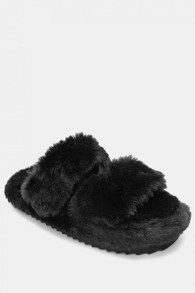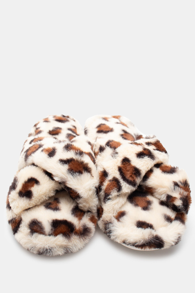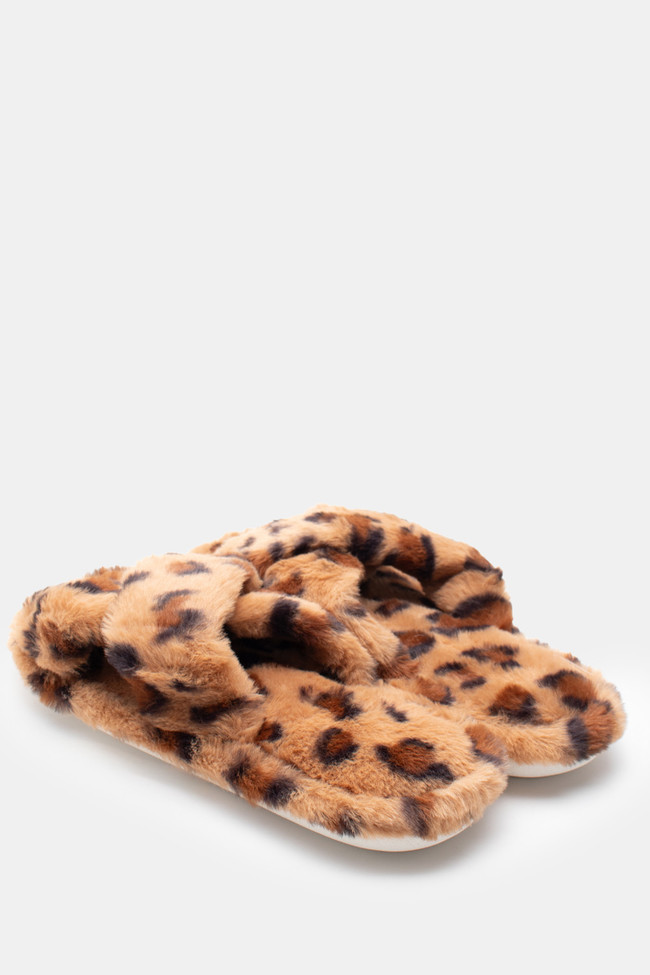 Papuci de blană cu barete încrucișate