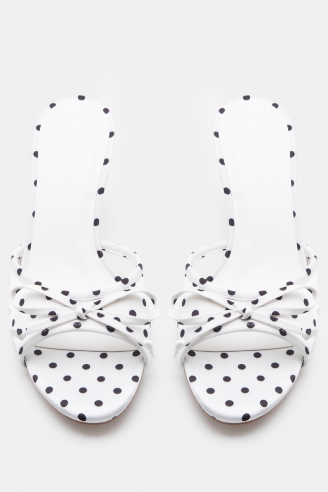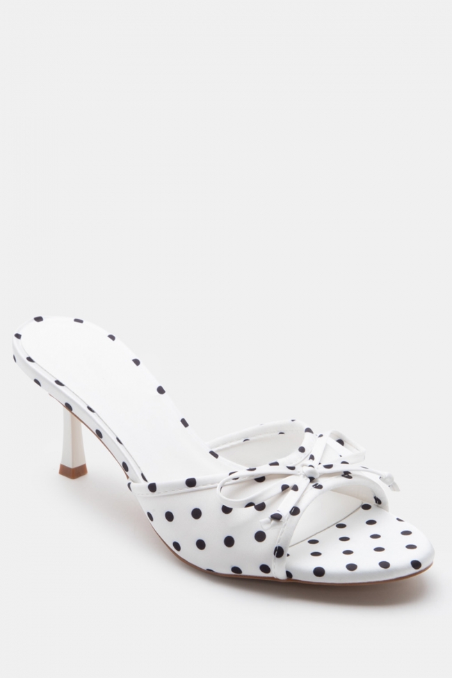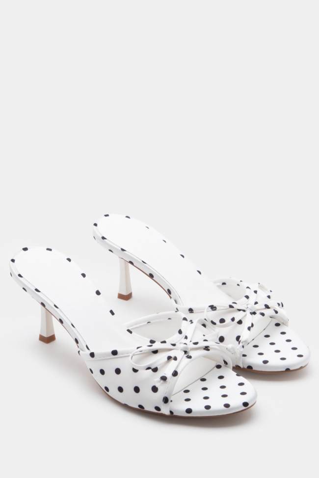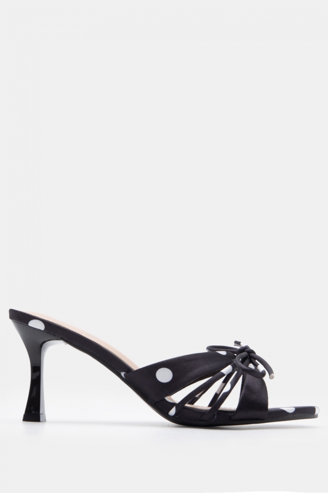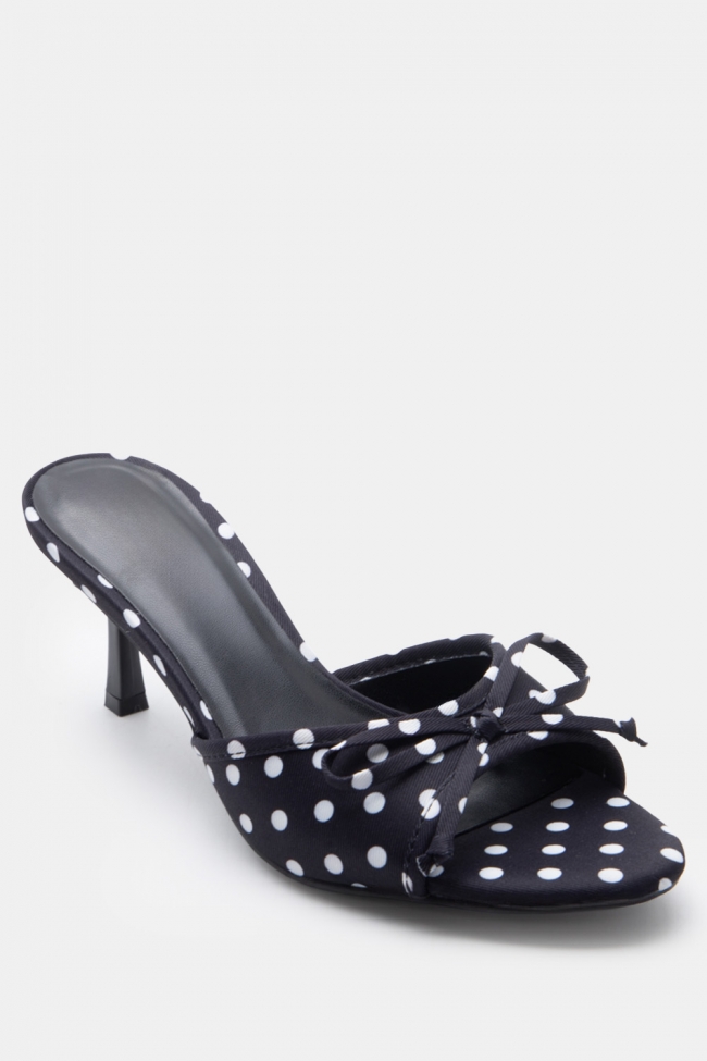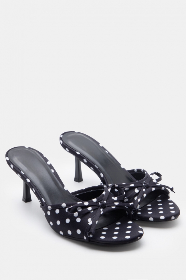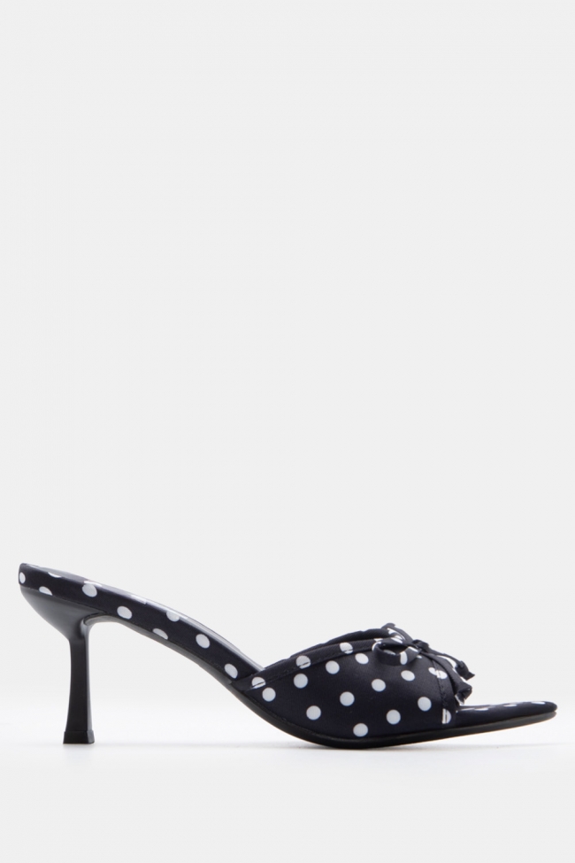 Mules Πουά με Χιαστί Λουράκια & Διακοσμητικό Φιόγκο