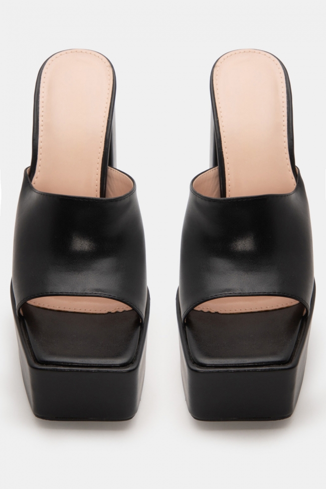 Κάνε εικόνα: Να φοράς ένα ζευγάρι μαύρα δερμάτινα πέδιλα με τζιν παντελόνα ή μια ολόσωμη φόρμα - η απόλυτα elegant εμφάνιση.