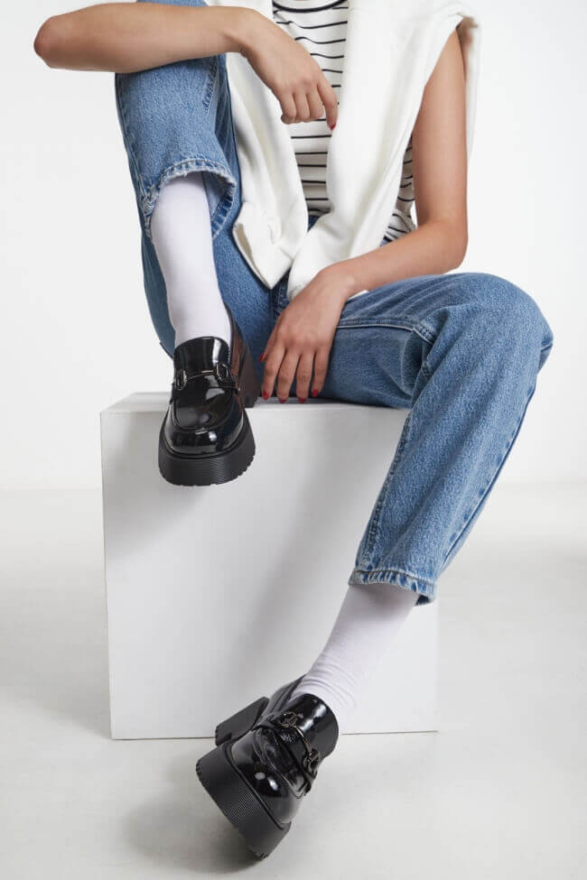 The high loafers pair perfectly with dresses or skirts, giving you a polished appearance with extra chic vibes. Choose a midi dress or an A-line skirt for an elegant combination that you can wear both to the office and more formal occasions. The heel on the loafers adds height and finesse while remaining comfortable for many hours.