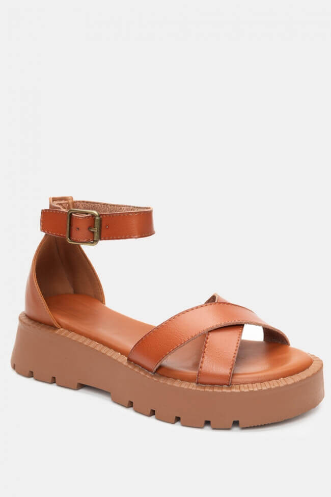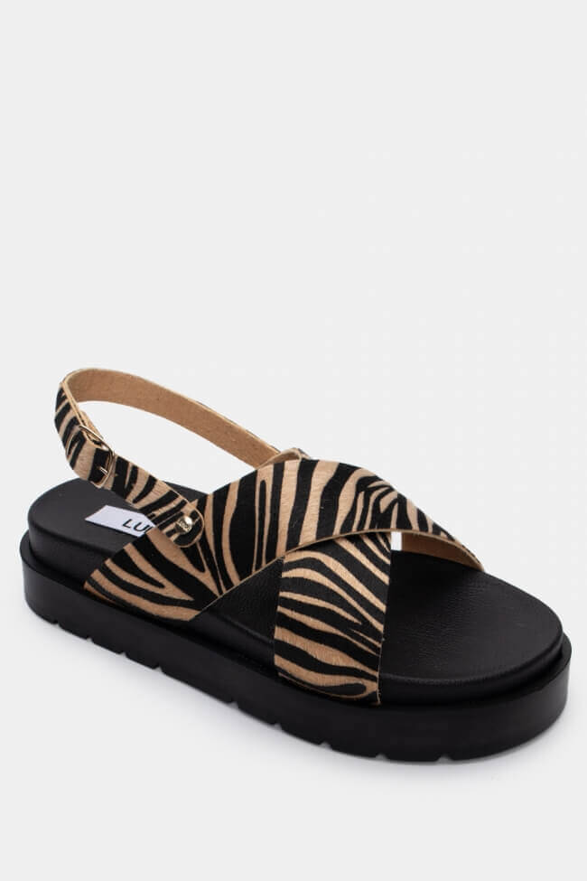 LUIGI DESIGN - Flatform Sandals with Crossed Straps